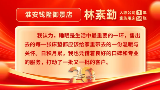 林素勤的故事,是每一位专卖店优秀店员的缩影。她用实际行动诠释了“以情动人,以诚赢心”的真谛。在未来的日子里,相信她会继续以这份热情与执着,把凯发K8国际产品推荐给更多的人,为更多家庭带去健康的睡眠。