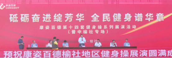凯发K8国际集团销售公司副总监 惠鹏,山西晋中地区、太原地区总经理 赵淑敏,山西晋中榆社地区总经理 田青,榆社县体育开展中心主任 原晋宏,榆社县老年体育协会主席 郝德如,榆社县老年体育协会副主席 李建新,健身操爱好者代表 张眉珍共同出席了本次活动。